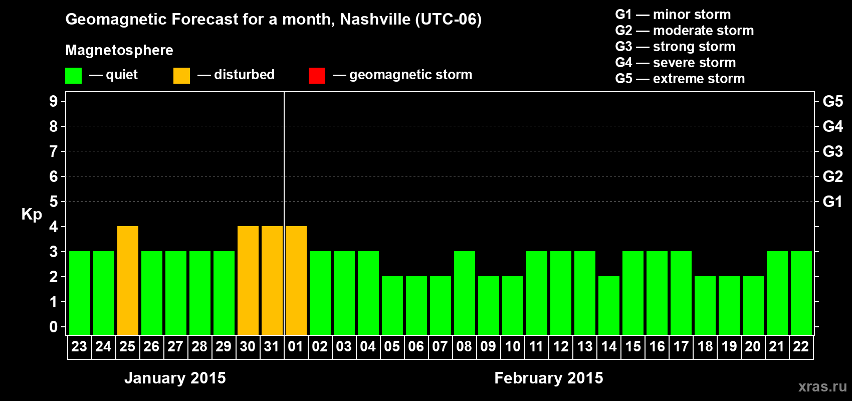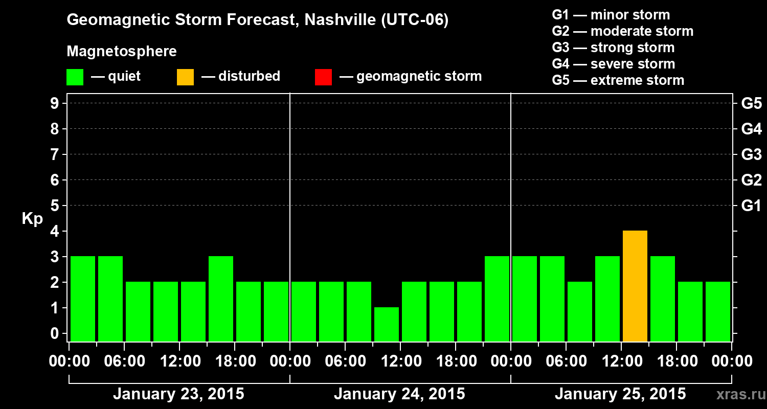 Geomagnetic storm forecast in Nashville for Jan 23, 2015