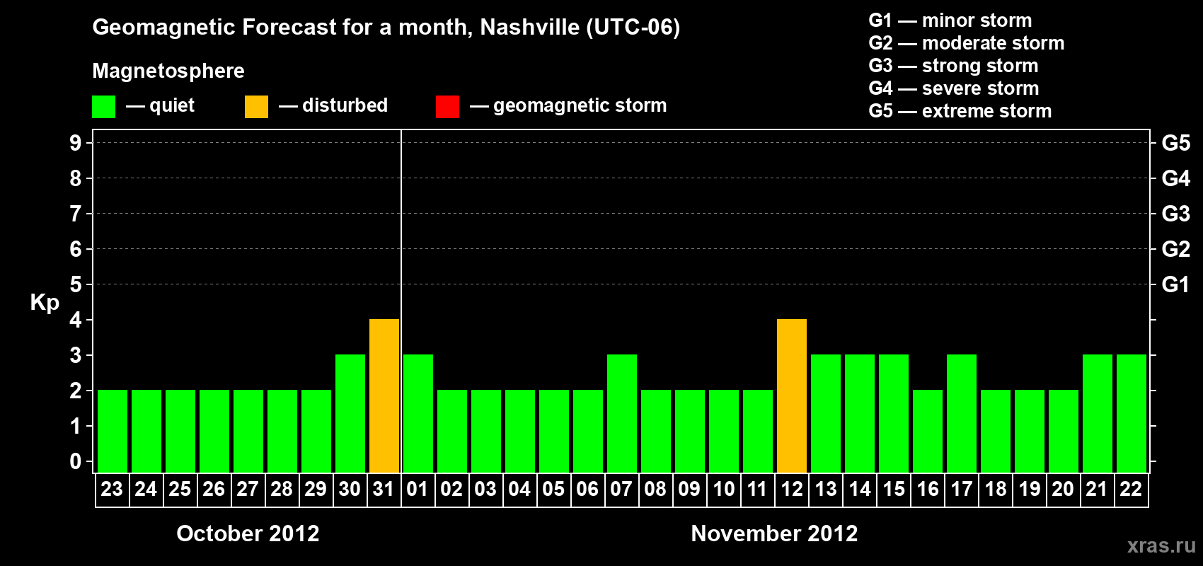 Geomagnetic storm forecast in Nashville for Oct 23, 2012