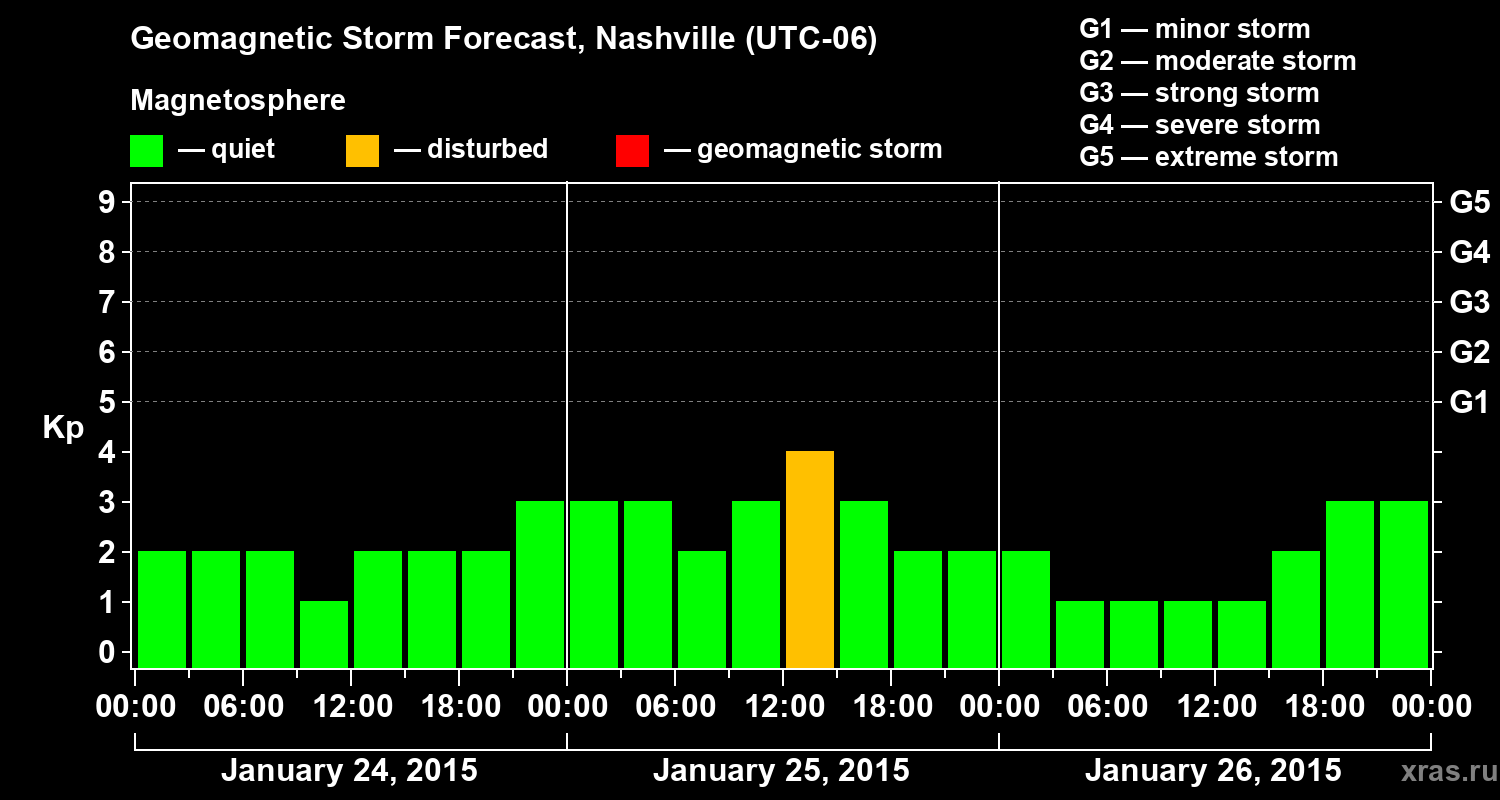 Geomagnetic storm forecast in Nashville for Jan 24, 2015