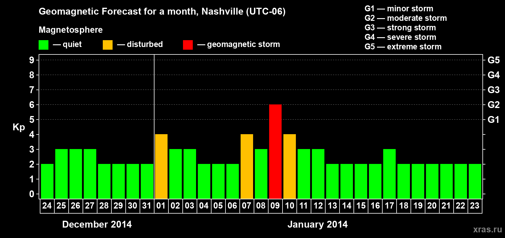 Geomagnetic storm forecast in Nashville for Dec 24, 2013
