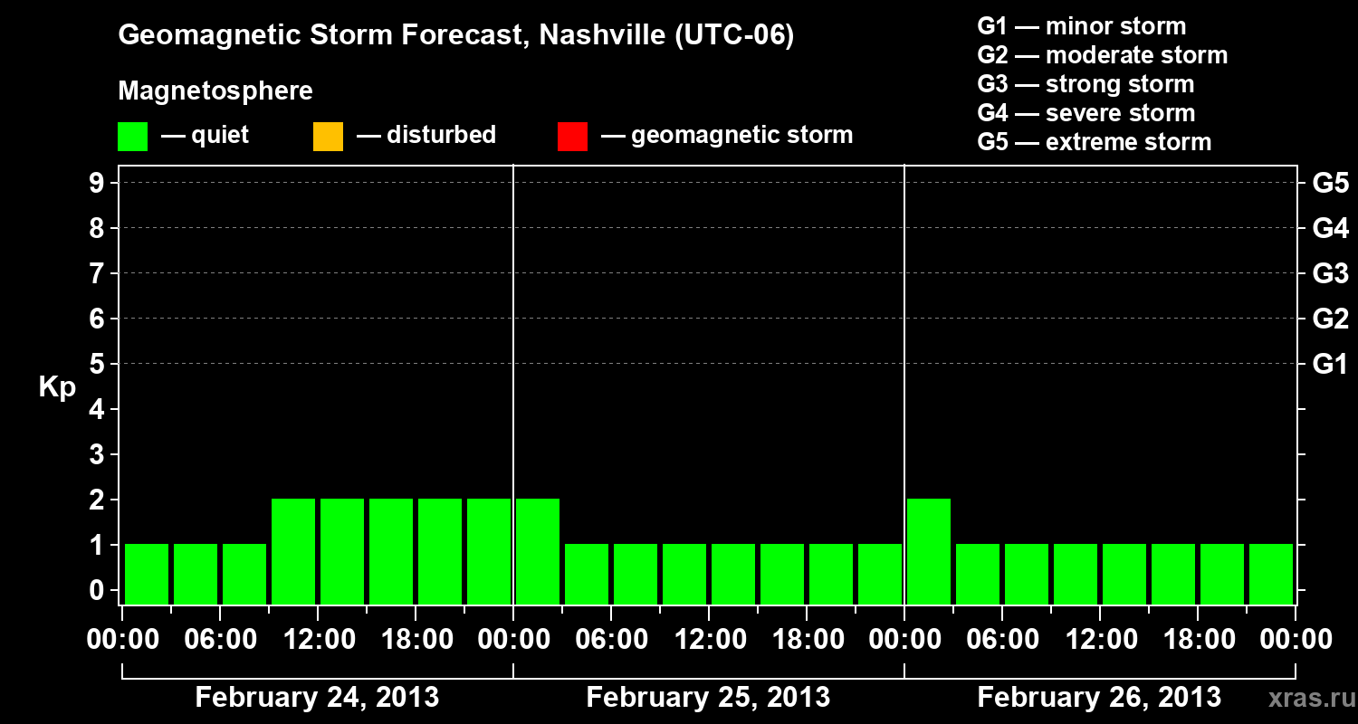 Geomagnetic storm forecast in Nashville for Feb 24, 2013