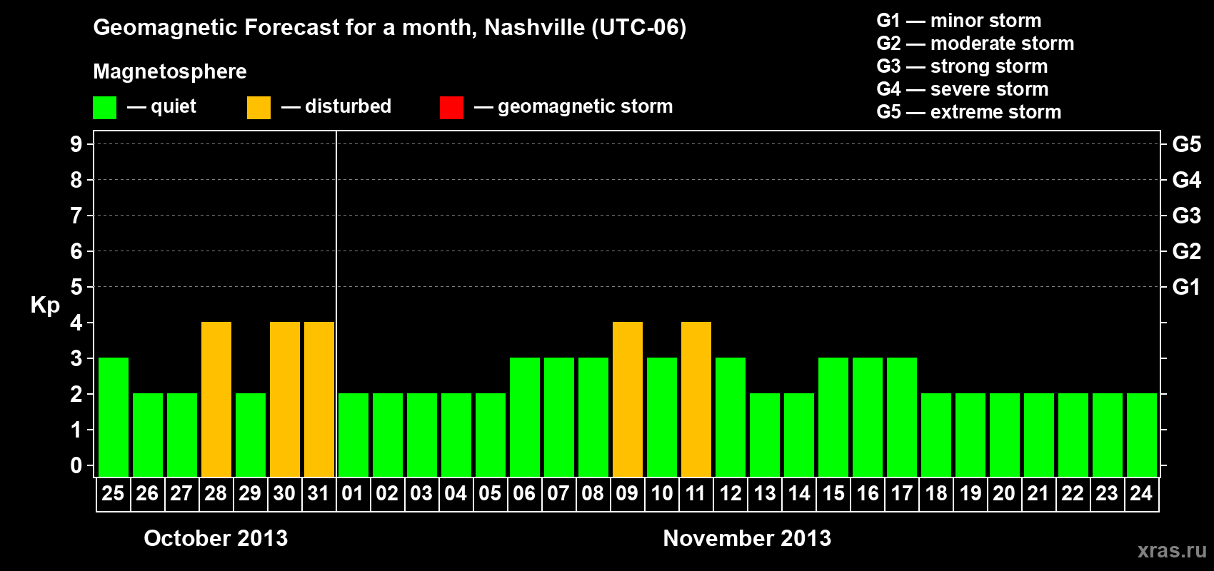 Geomagnetic storm forecast in Nashville for Oct 25, 2013