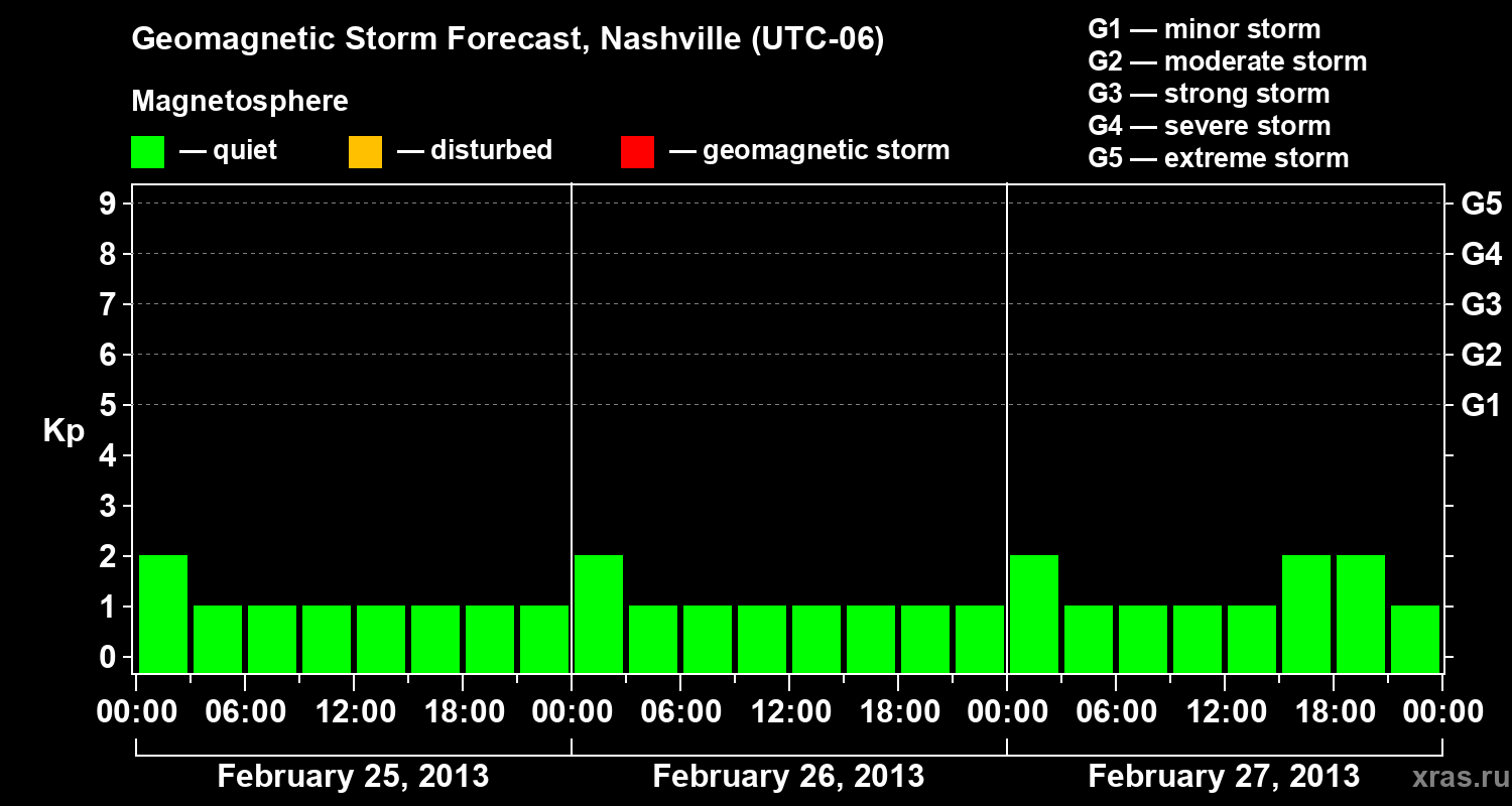 Geomagnetic storm forecast in Nashville for Feb 25, 2013