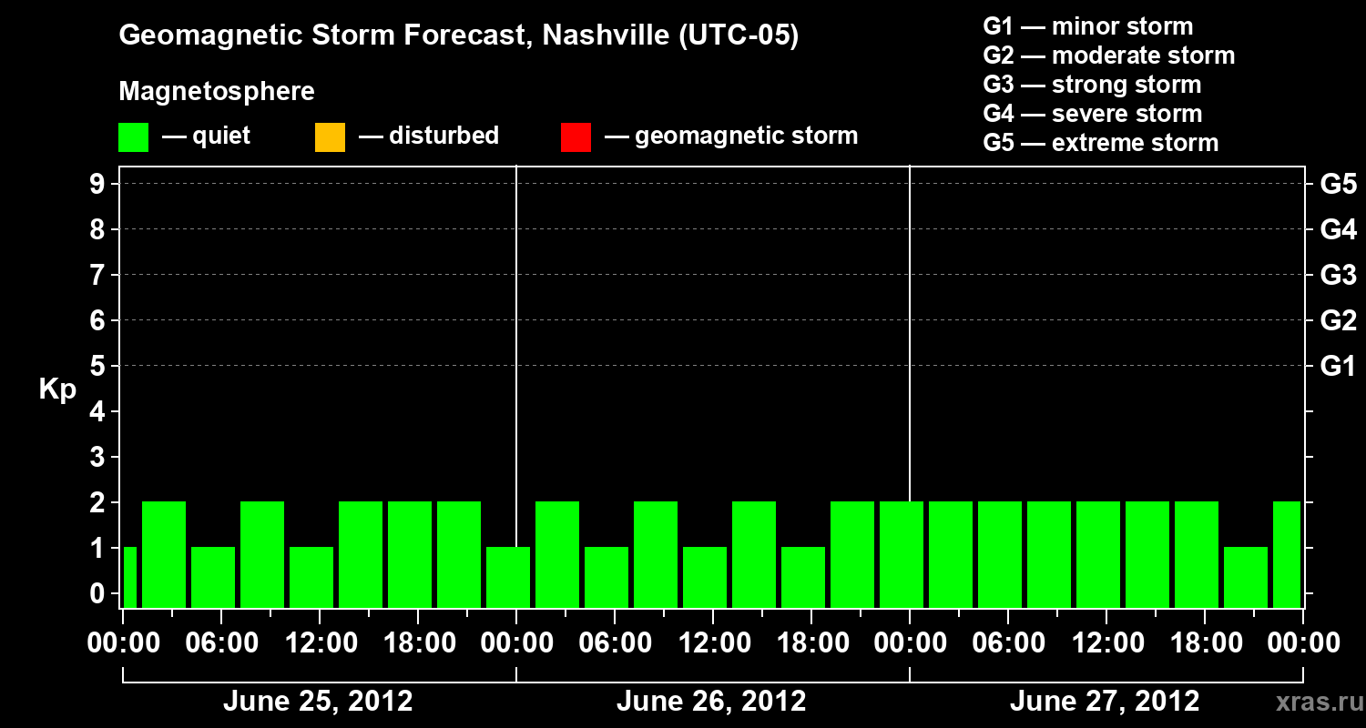 Geomagnetic storm forecast in Nashville for Jun 25, 2012
