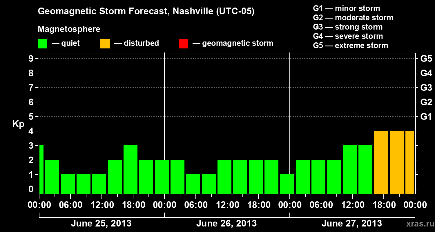 Geomagnetic storm forecast in Nashville for Jun 25, 2013