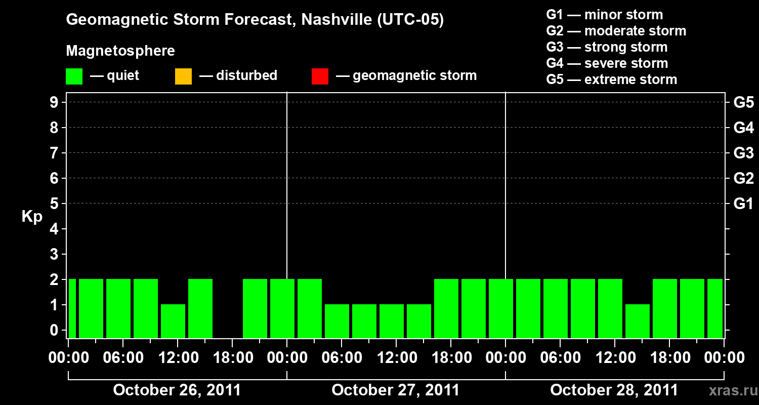 Geomagnetic storm forecast in Nashville for Oct 26, 2011
