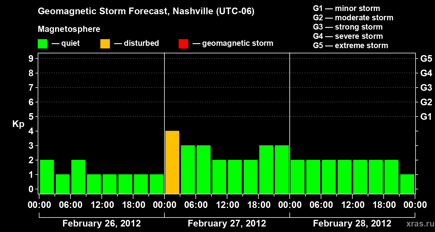 Geomagnetic storm forecast in Nashville for Feb 26, 2012