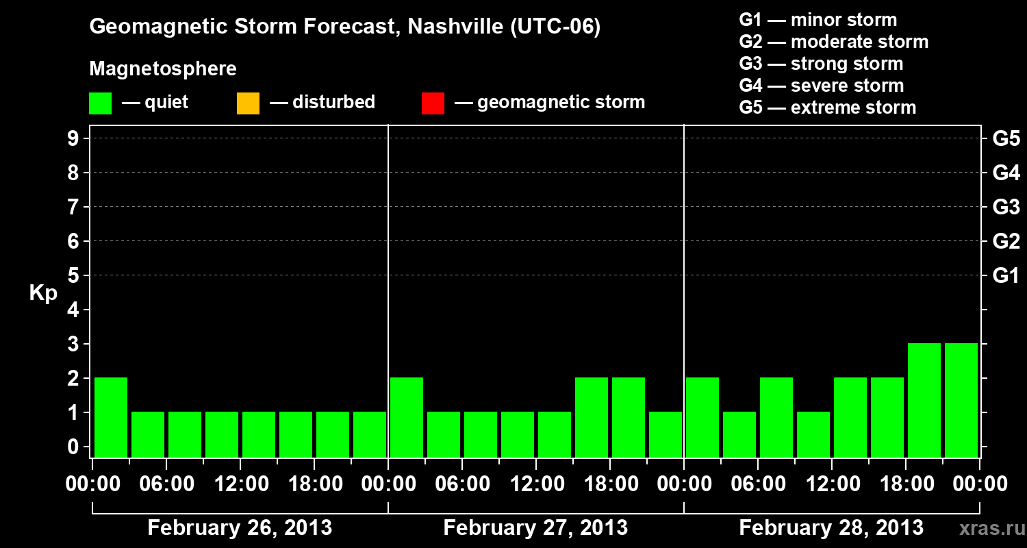 Geomagnetic storm forecast in Nashville for Feb 26, 2013