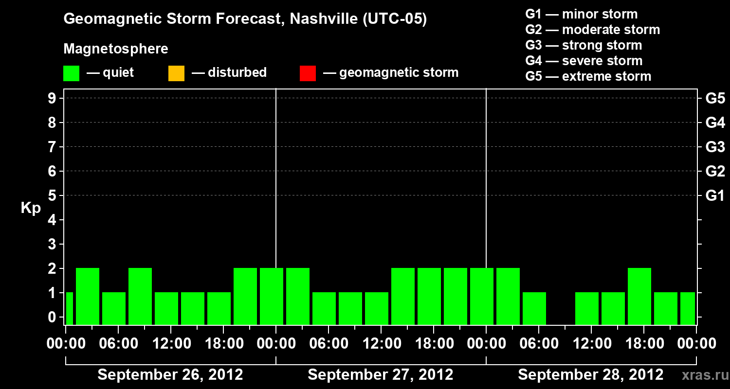 Geomagnetic storm forecast in Nashville for Sep 26, 2012