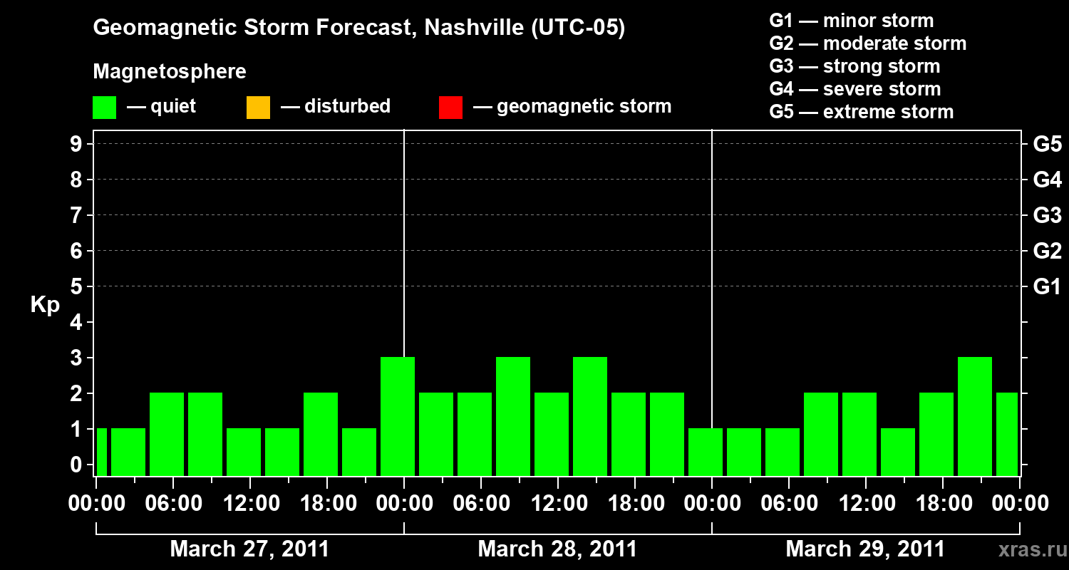 Geomagnetic storm forecast in Nashville for Mar 27, 2011