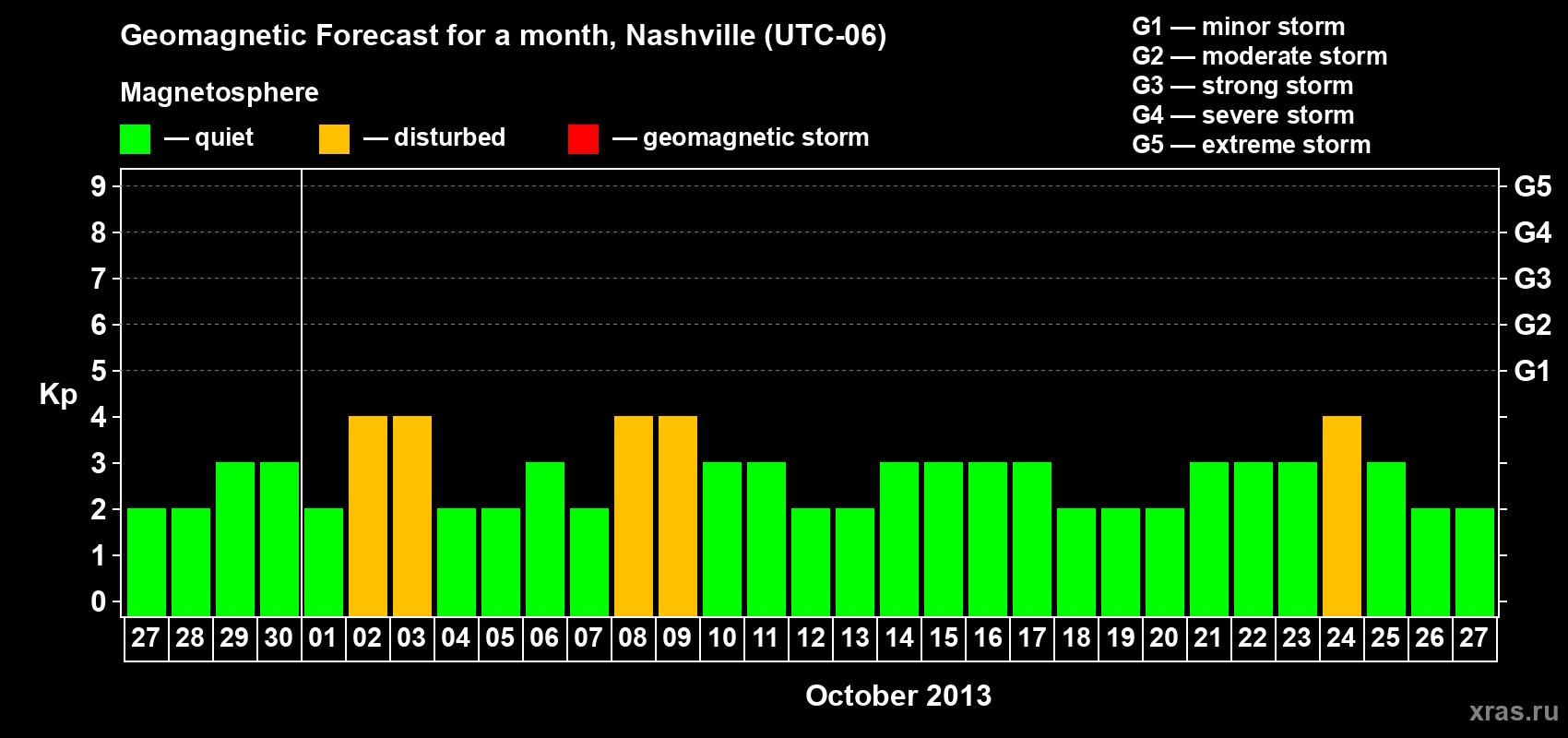 Geomagnetic storm forecast in Nashville for Sep 27, 2013