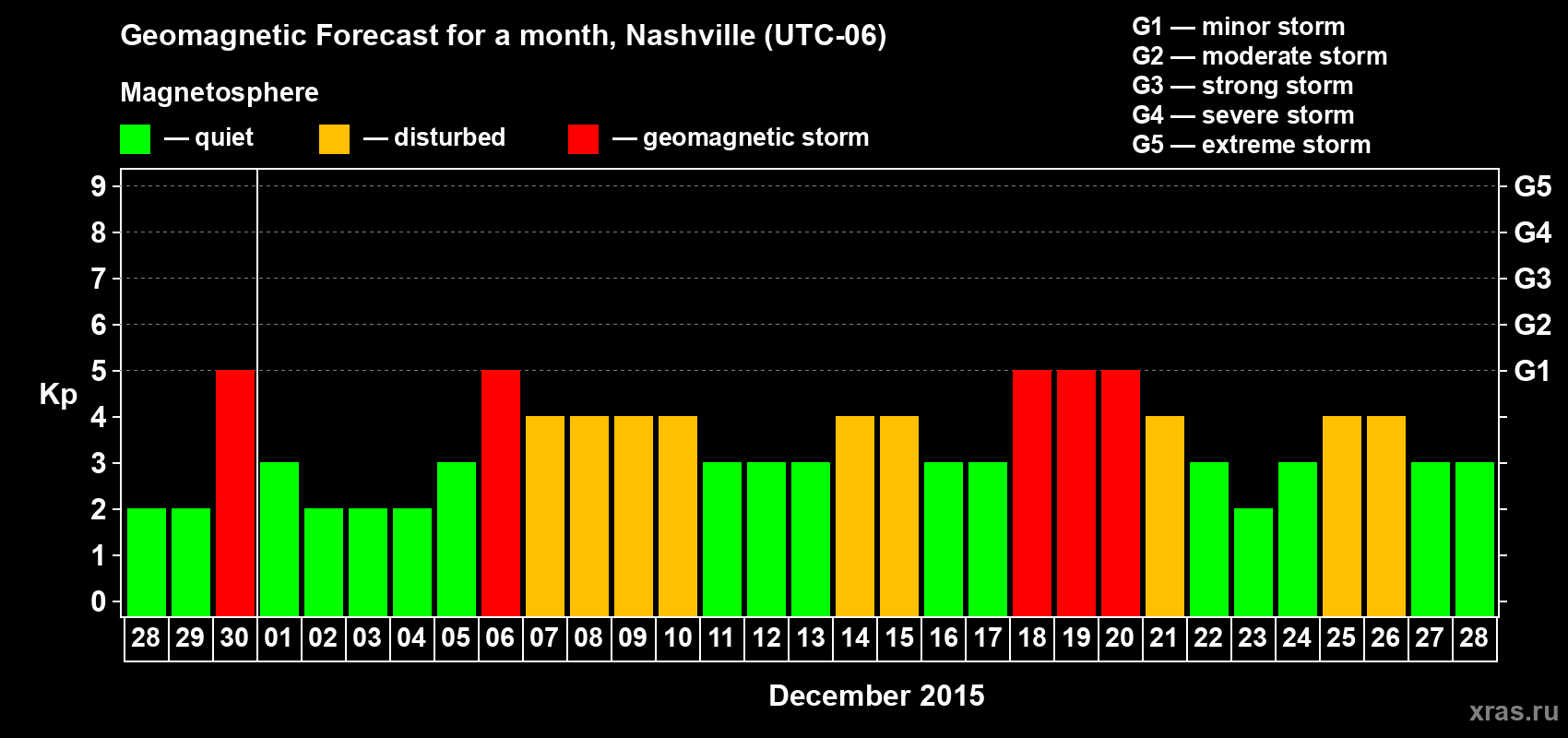 Geomagnetic storm forecast in Nashville for Nov 28, 2015