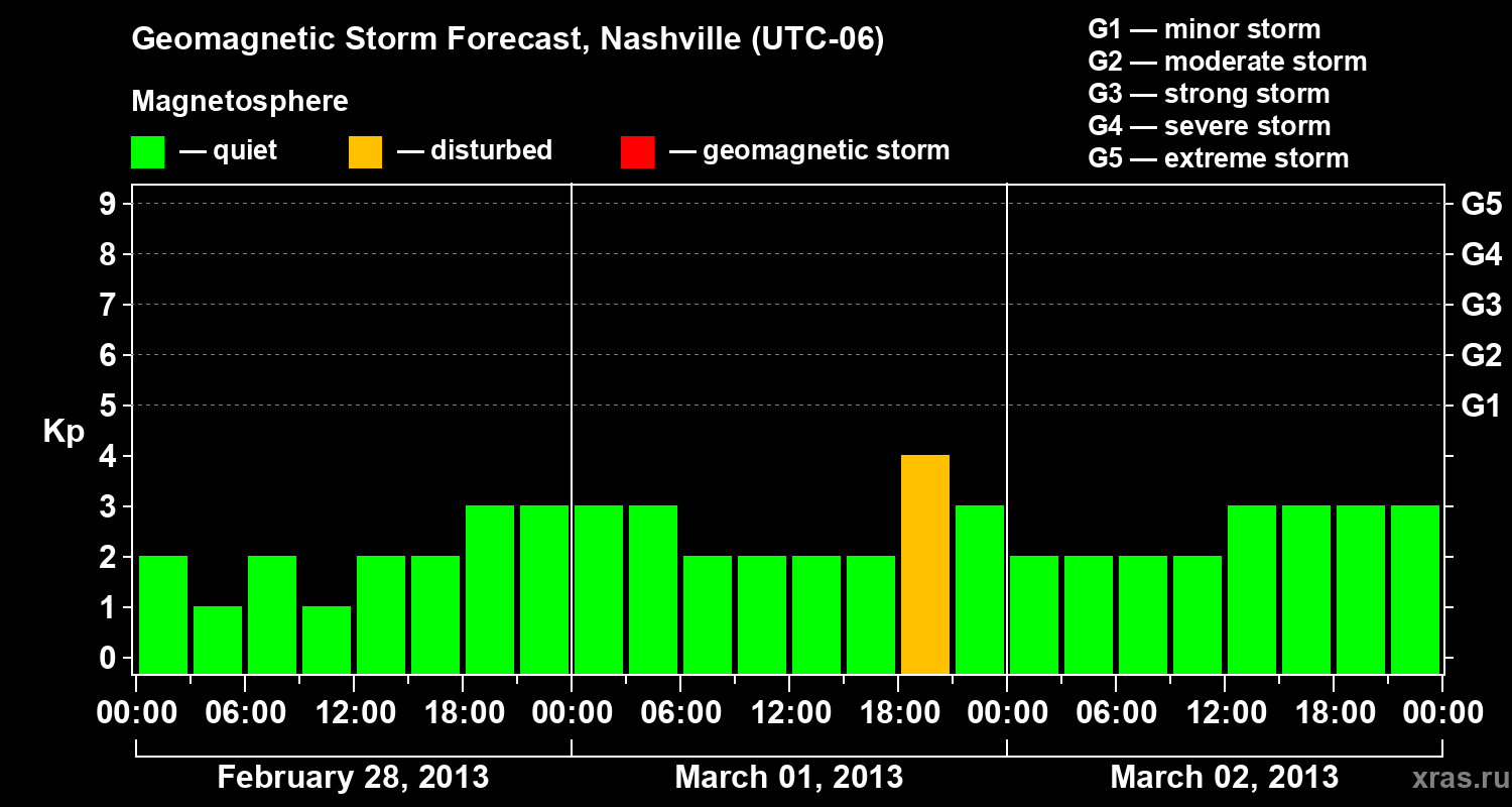 Geomagnetic storm forecast in Nashville for Feb 28, 2013