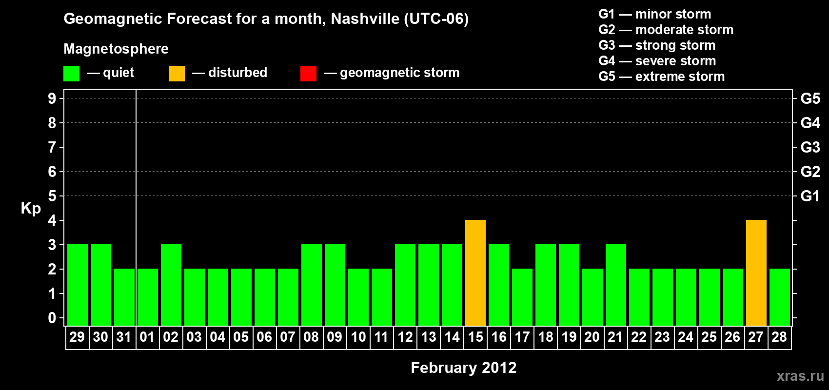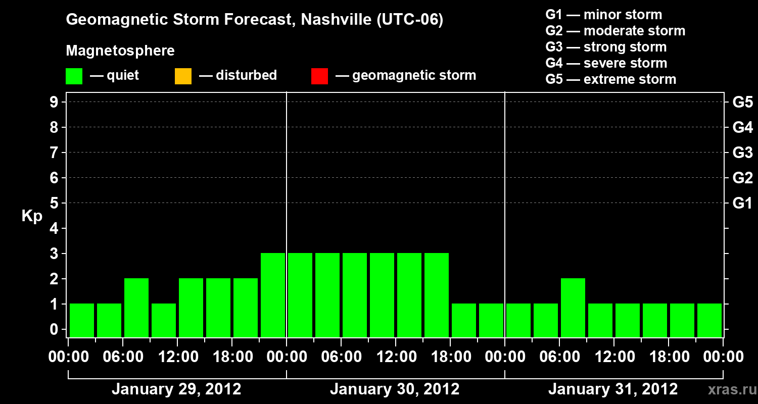 Geomagnetic storm forecast in Nashville for Jan 29, 2012