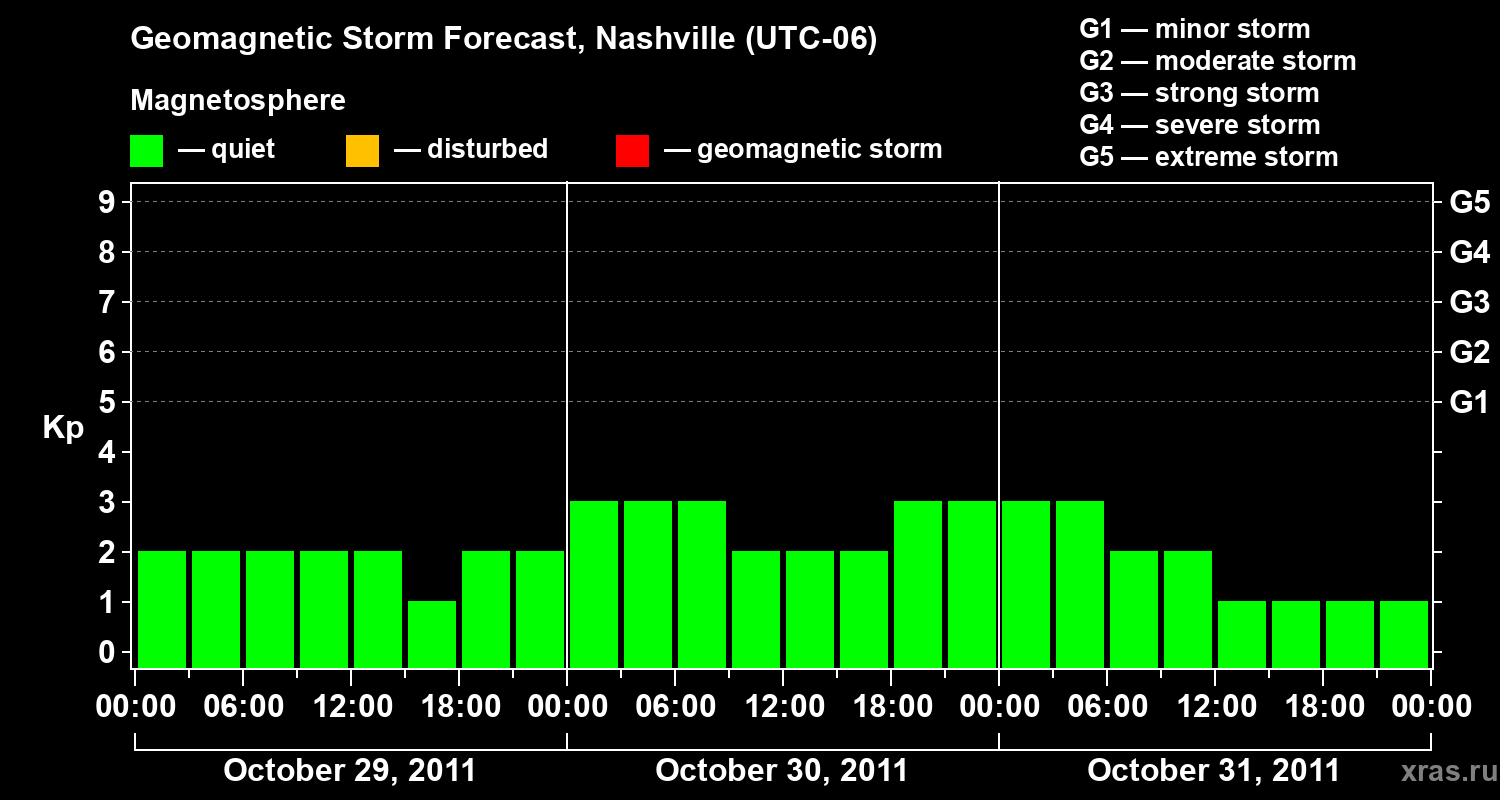 Geomagnetic storm forecast in Nashville for Oct 29, 2011