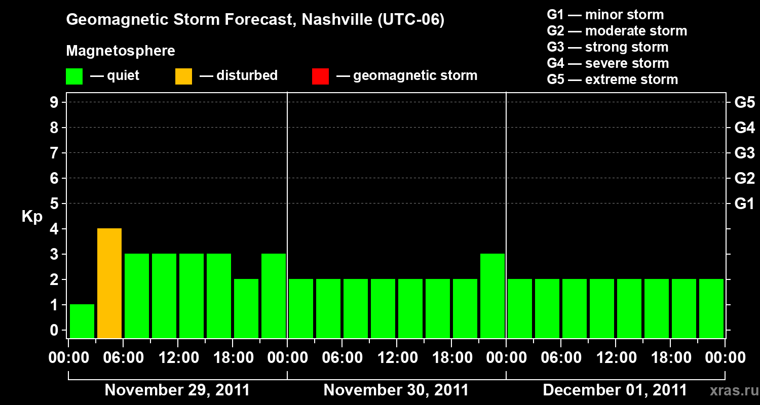 Geomagnetic storm forecast in Nashville for Nov 29, 2011