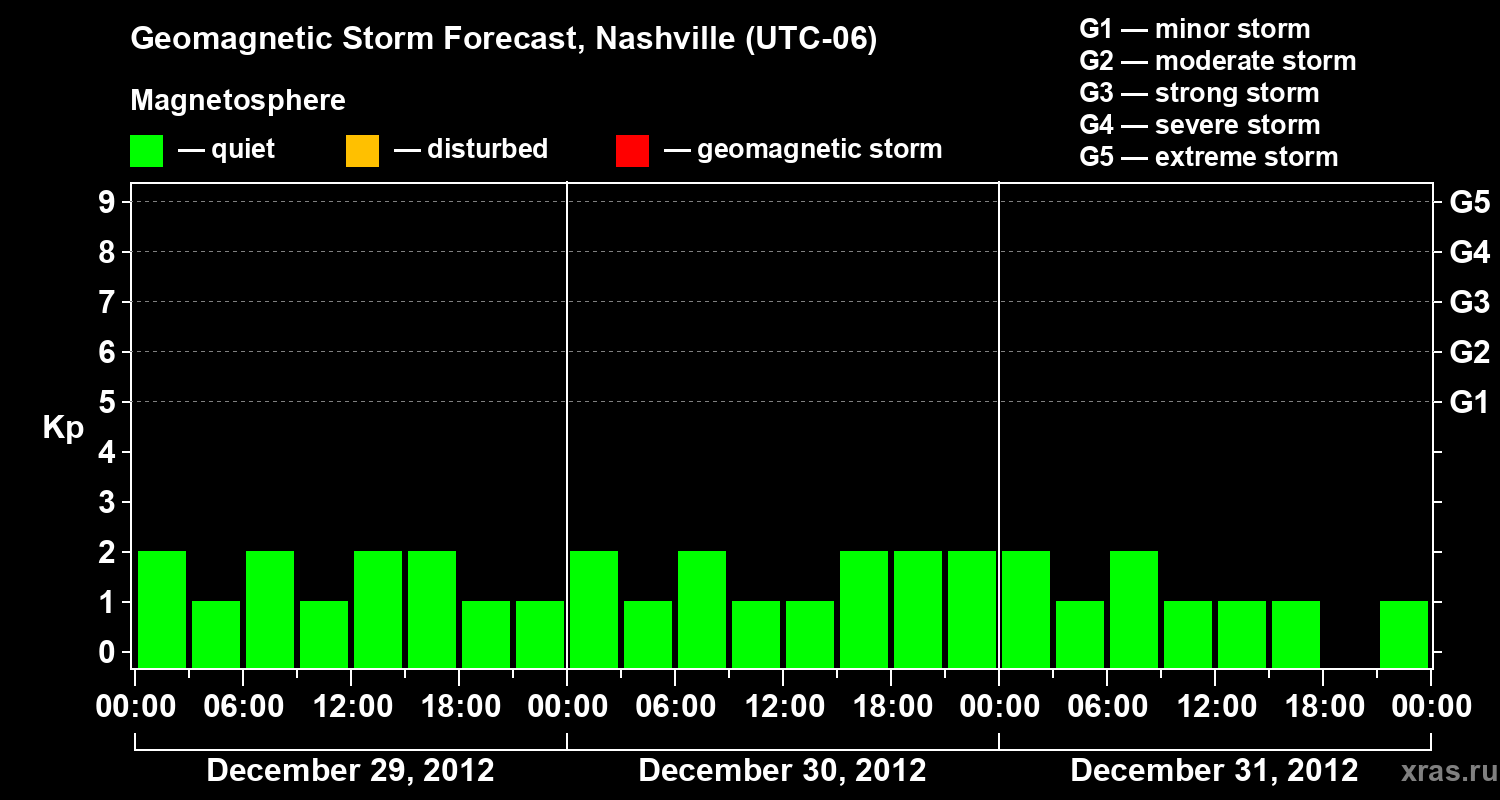 Geomagnetic storm forecast in Nashville for Dec 29, 2012