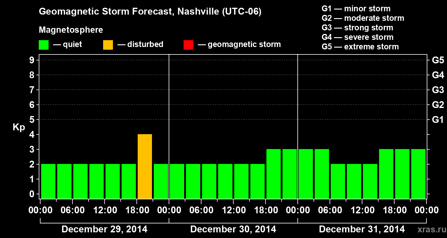 Geomagnetic storm forecast in Nashville for Dec 29, 2014