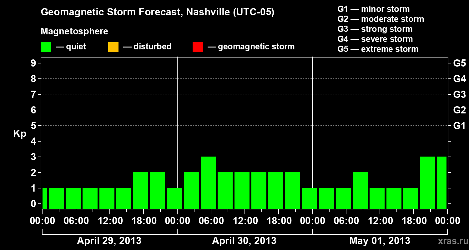 Geomagnetic storm forecast in Nashville for Apr 29, 2013