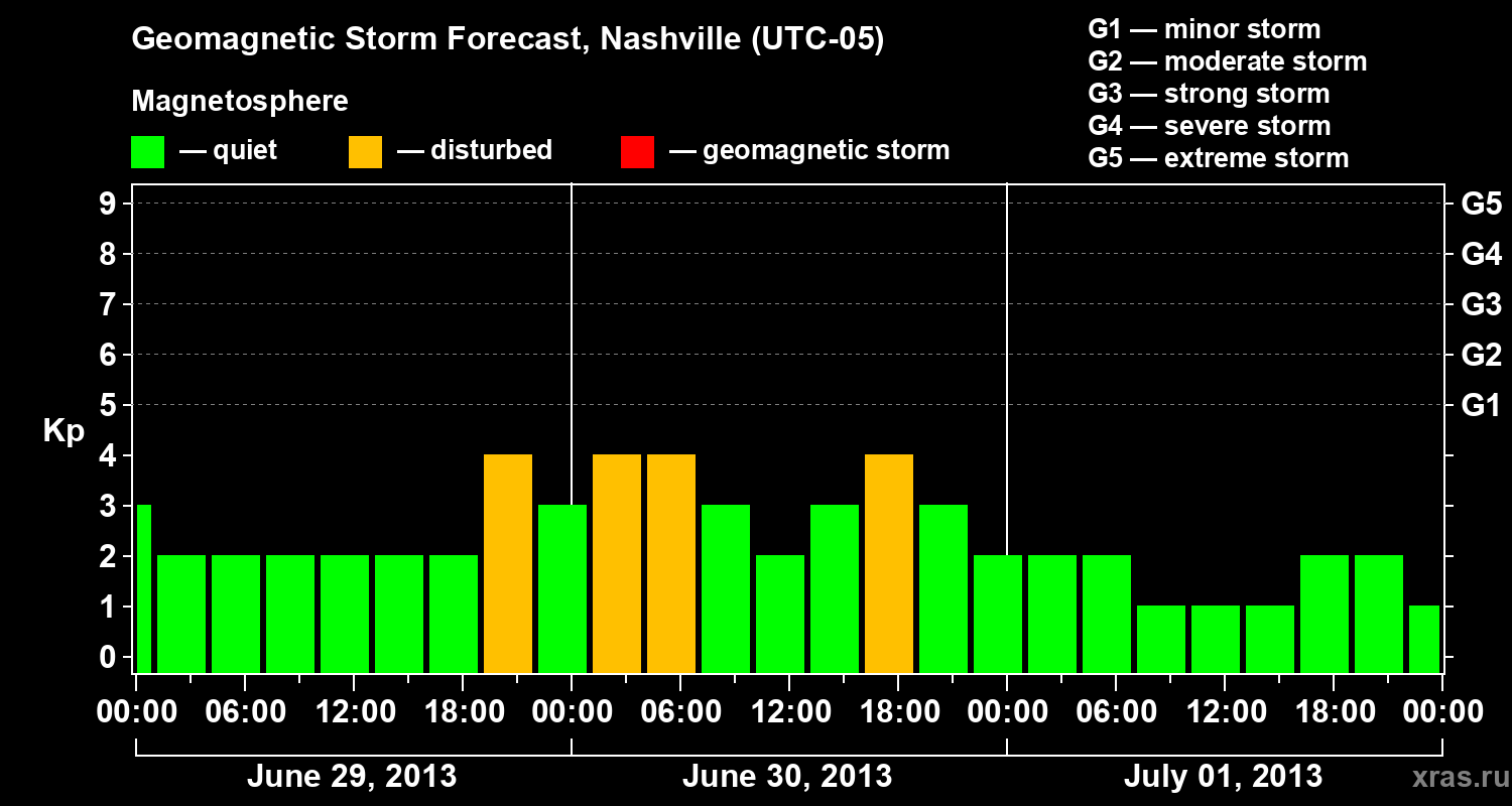Geomagnetic storm forecast in Nashville for Jun 29, 2013