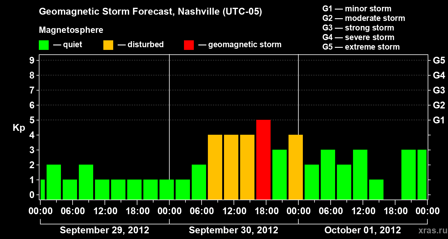 Geomagnetic storm forecast in Nashville for Sep 29, 2012