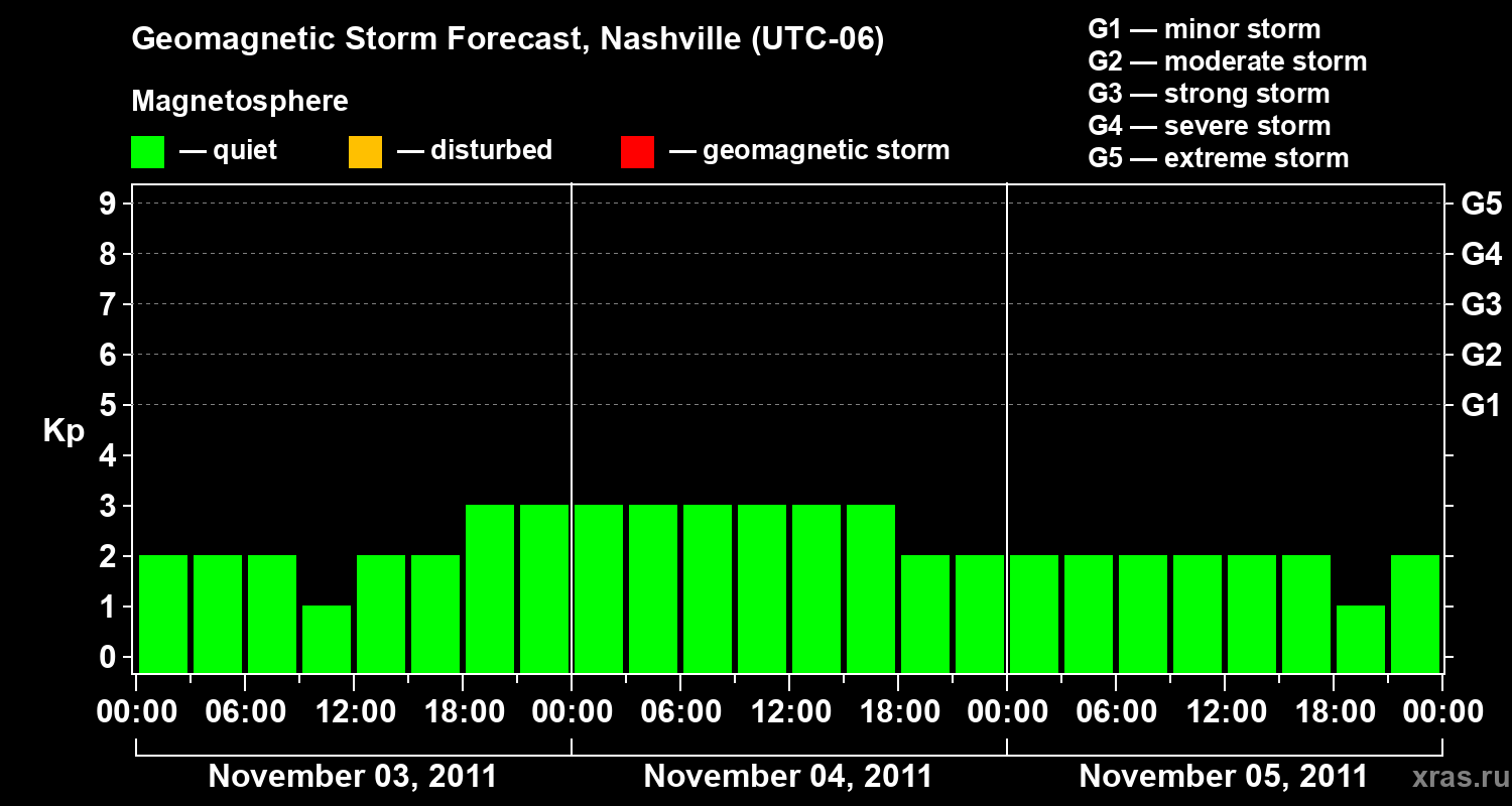 Geomagnetic storm forecast in Nashville for Nov 03, 2011