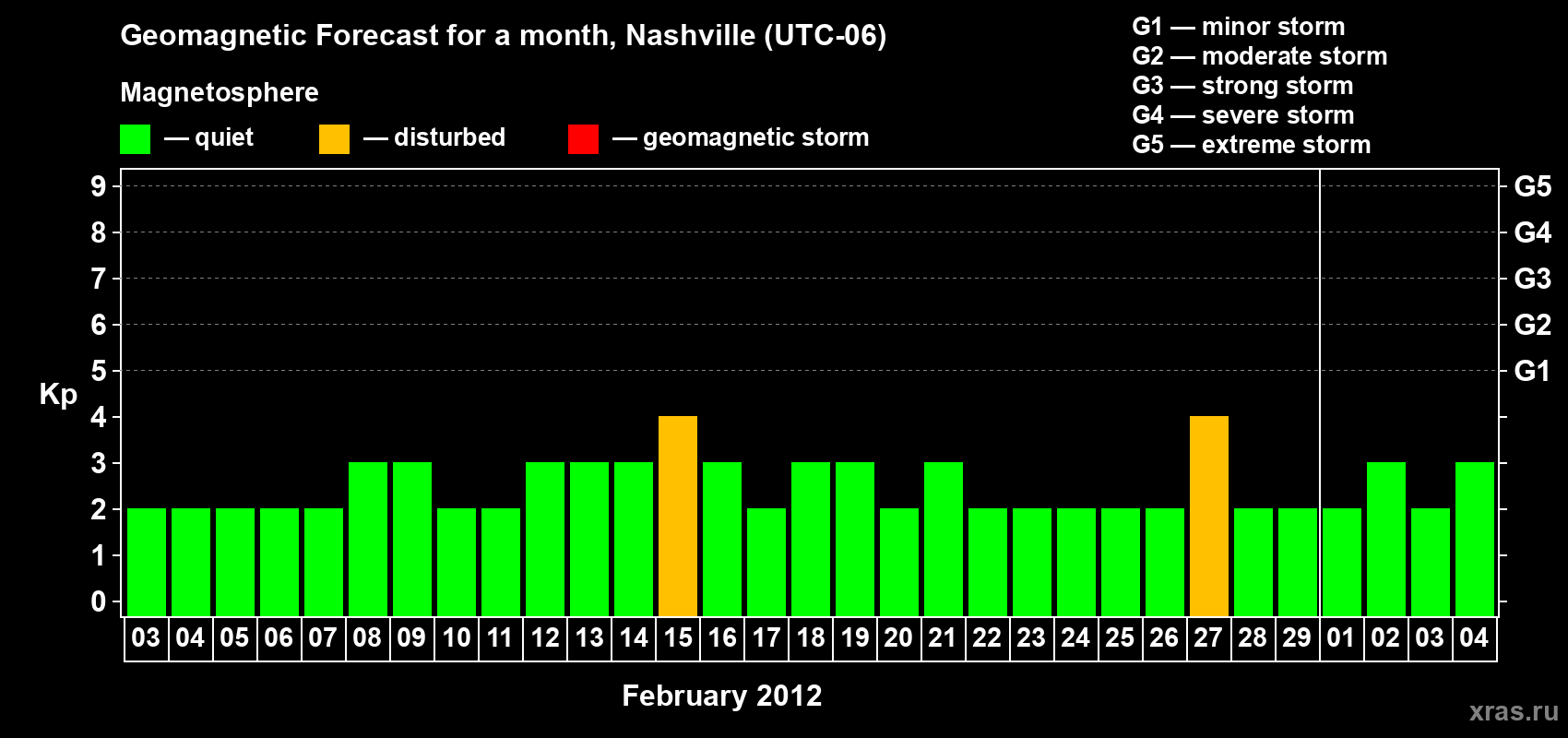 Geomagnetic storm forecast in Nashville for Feb 03, 2012