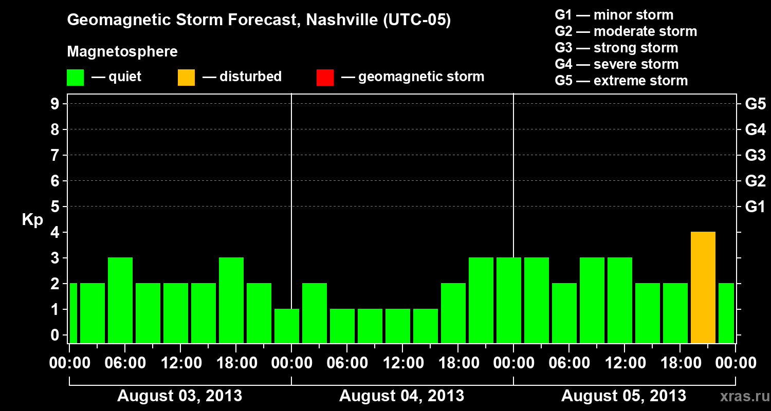 Geomagnetic storm forecast in Nashville for Aug 03, 2013