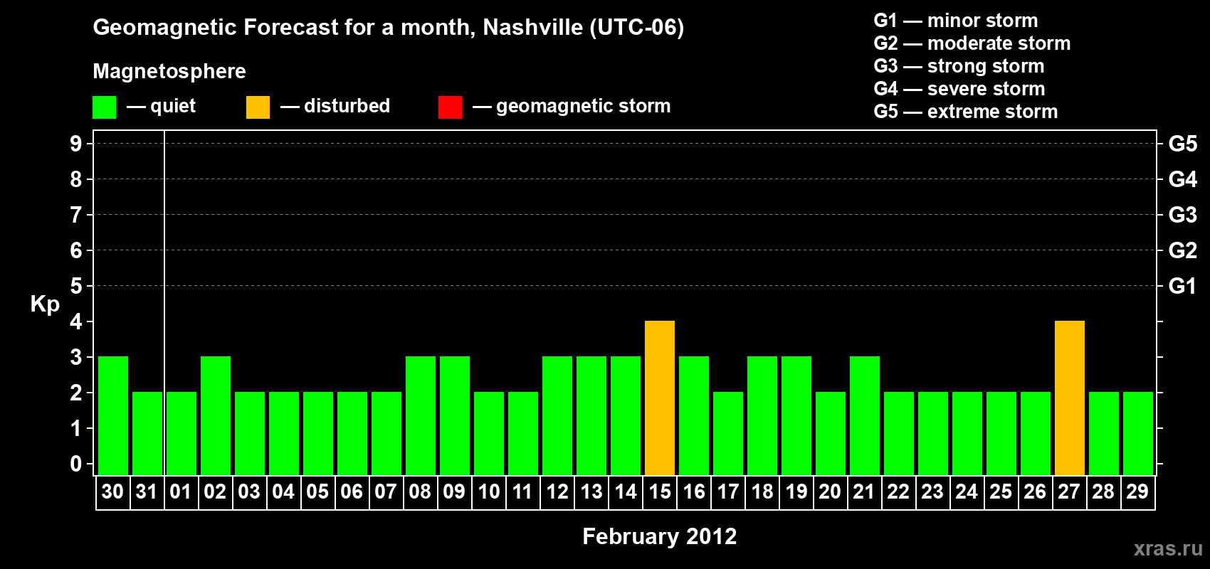 Geomagnetic storm forecast in Nashville for Jan 30, 2012