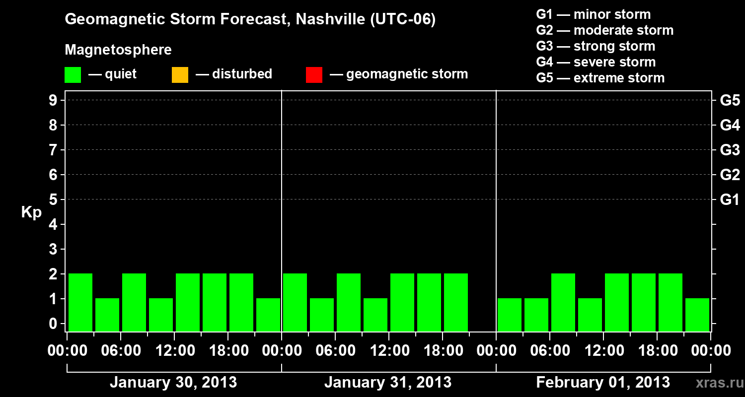 Geomagnetic storm forecast in Nashville for Jan 30, 2013