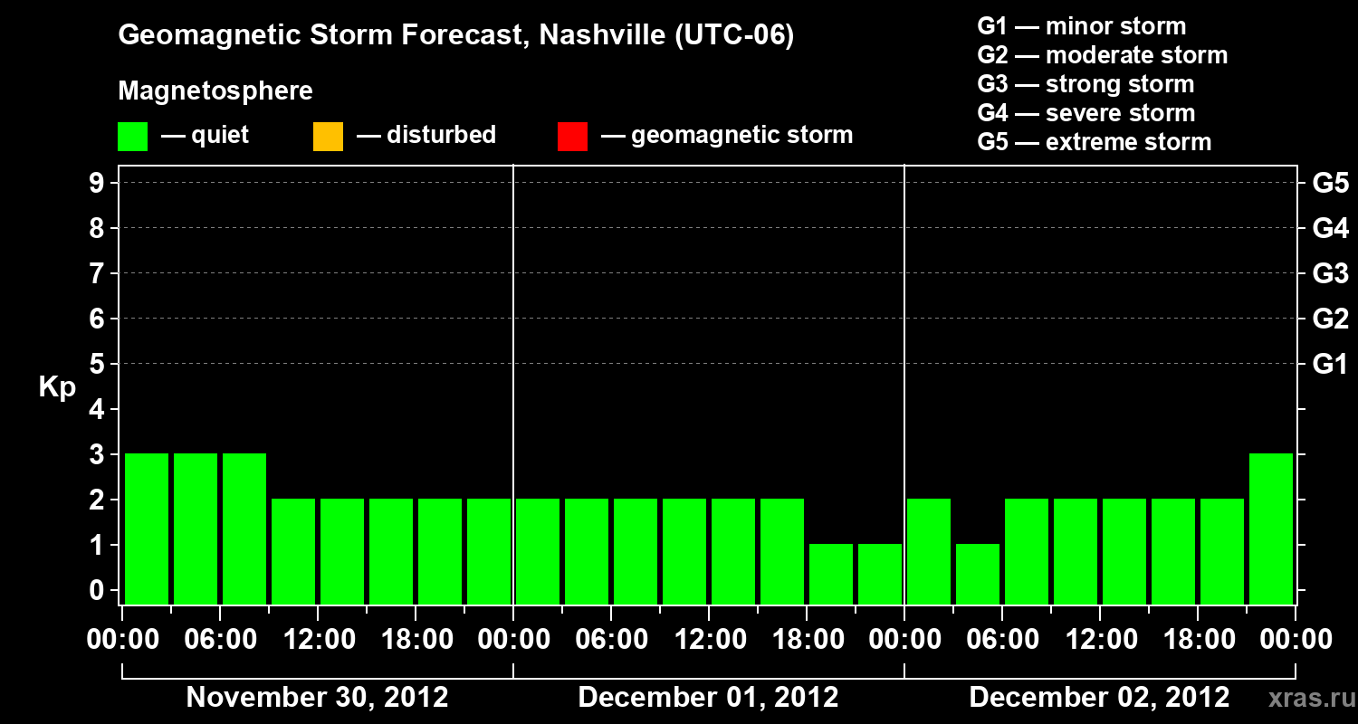 Geomagnetic storm forecast in Nashville for Nov 30, 2012