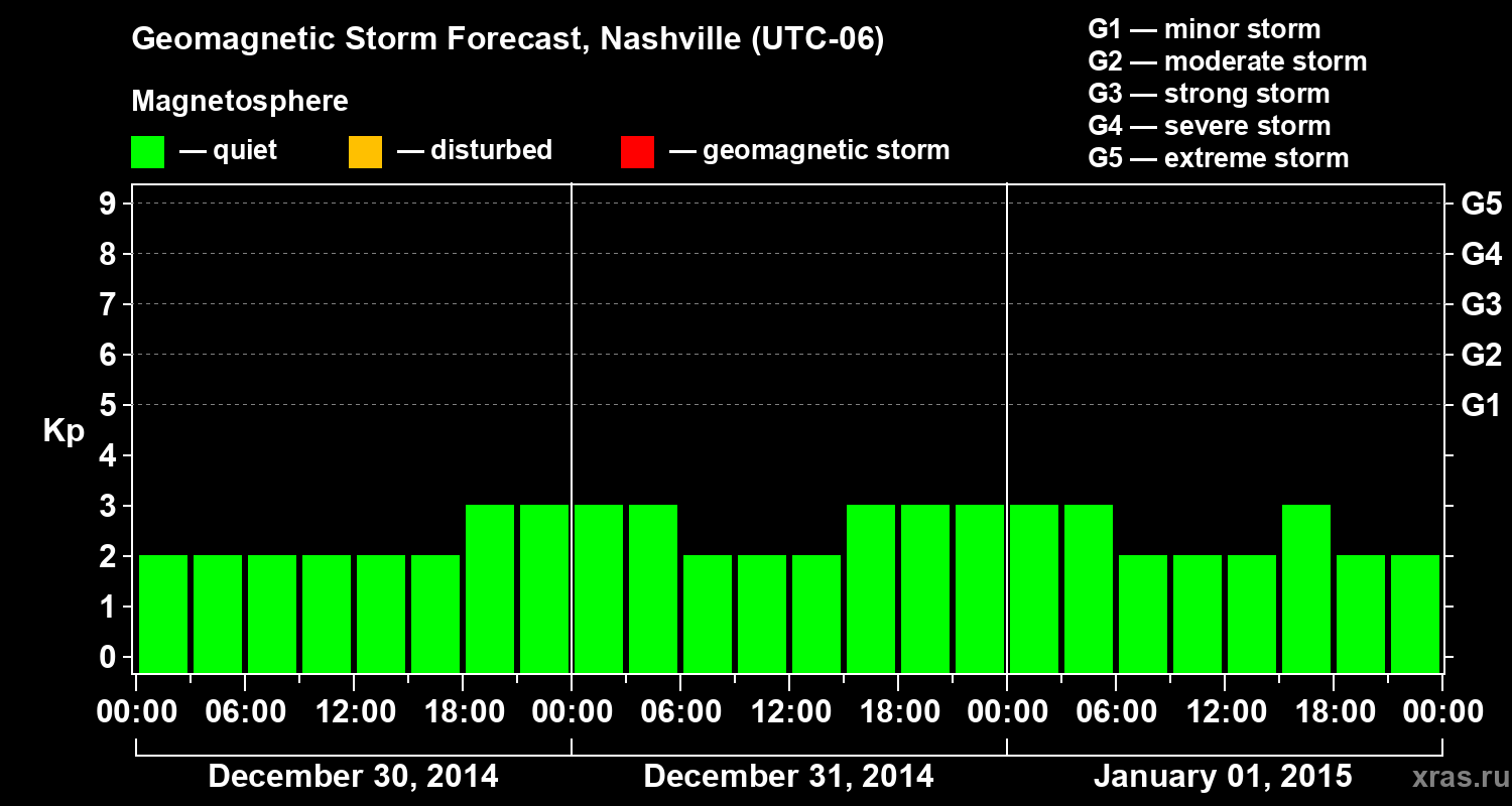 Geomagnetic storm forecast in Nashville for Dec 30, 2014