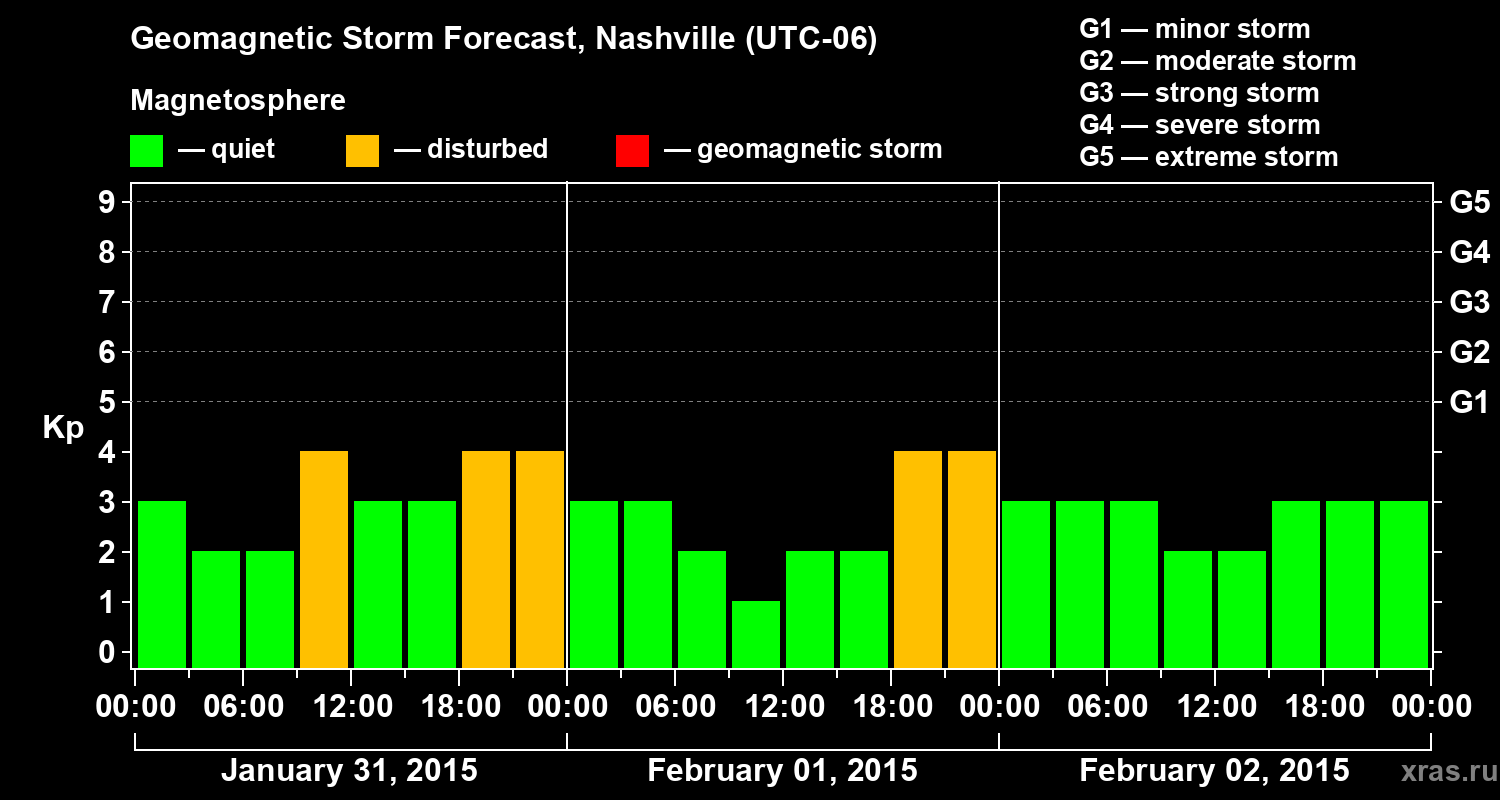 Geomagnetic storm forecast in Nashville for Jan 31, 2015