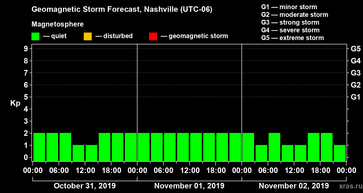 Geomagnetic storm forecast in Nashville for Oct 31, 2019