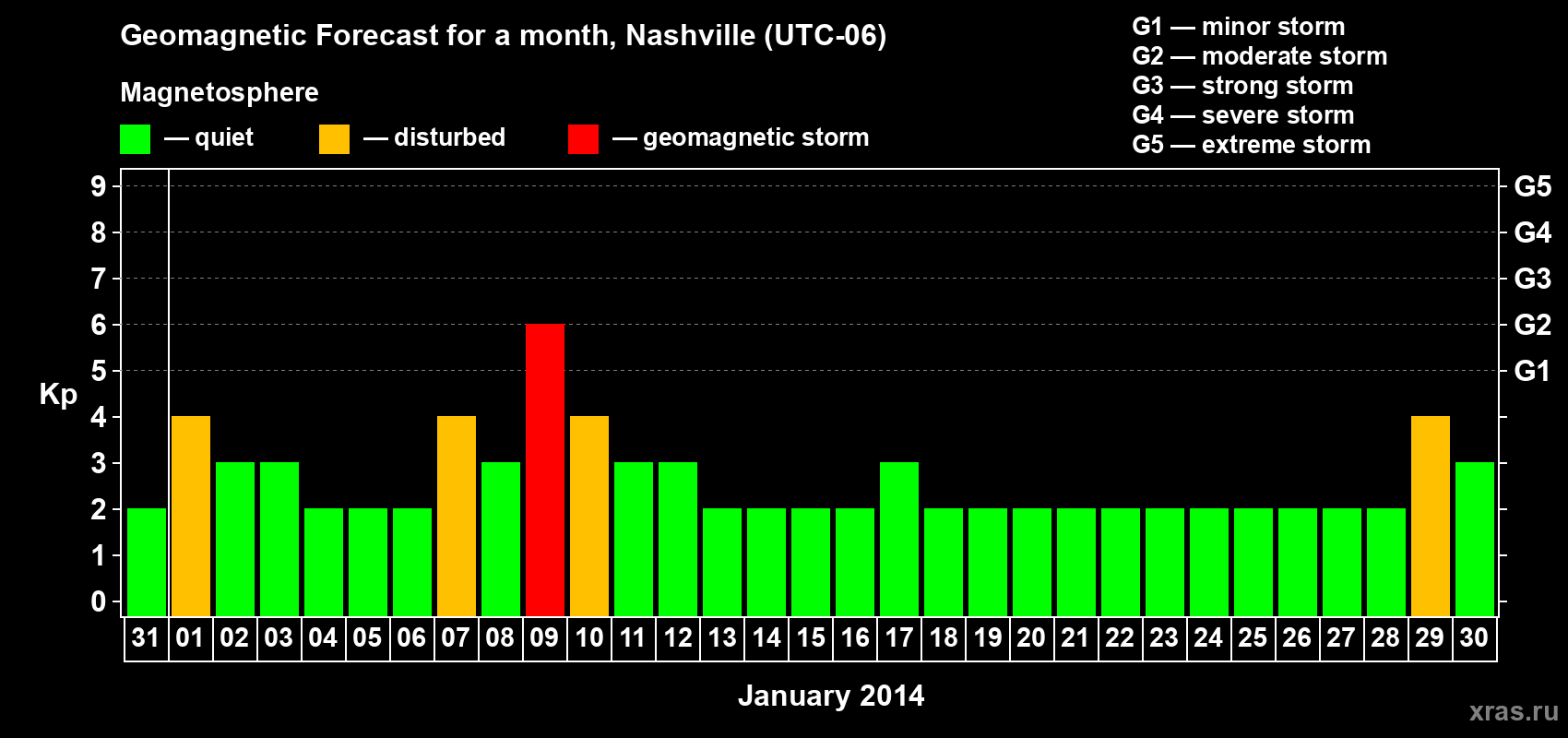 Geomagnetic storm forecast in Nashville for Dec 31, 2013