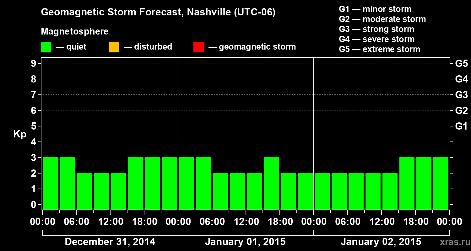Geomagnetic storm forecast in Nashville for Dec 31, 2014