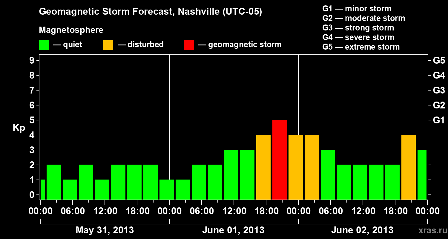 Geomagnetic storm forecast in Nashville for May 31, 2013