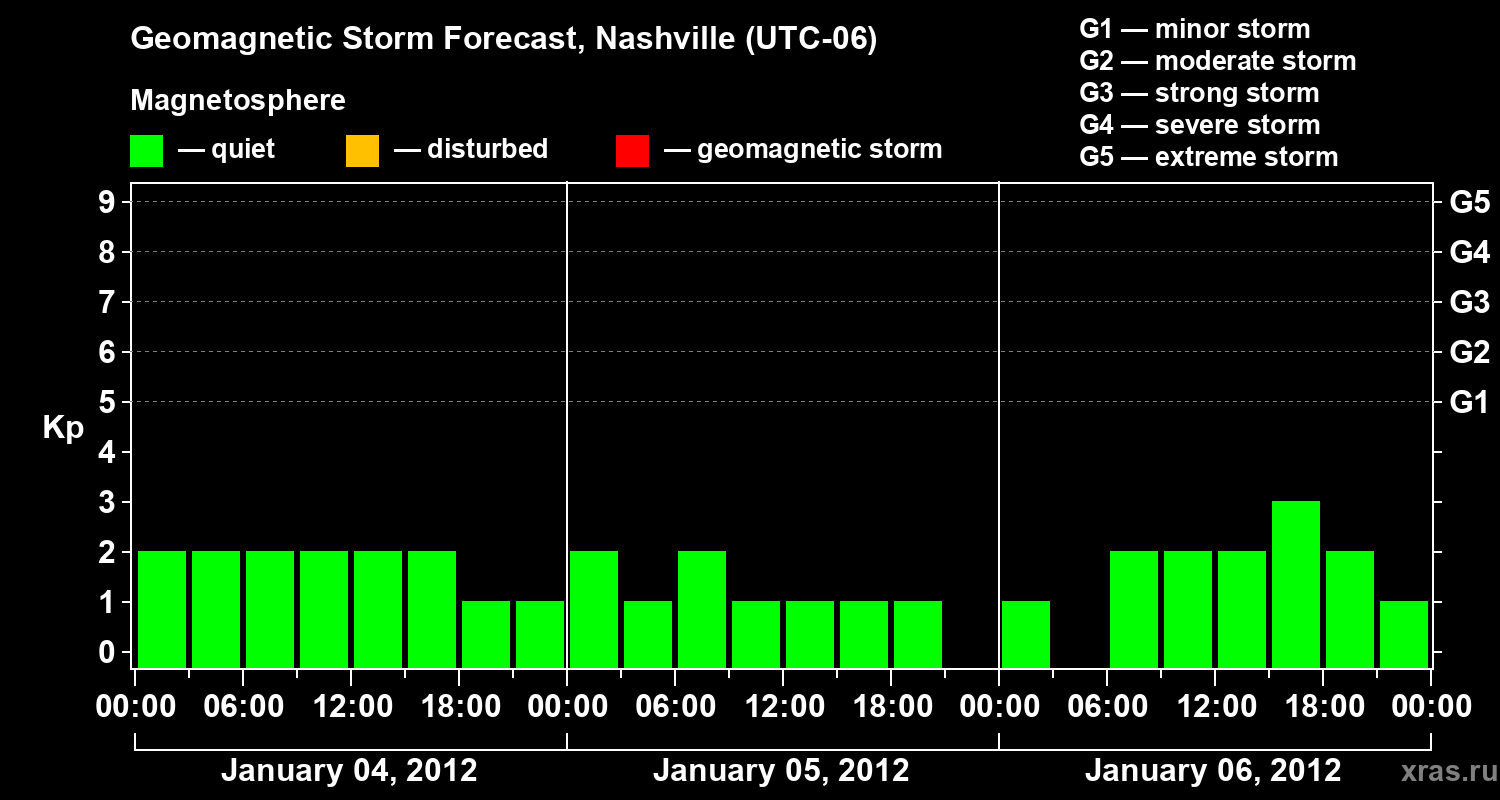 Geomagnetic storm forecast in Nashville for Jan 04, 2012