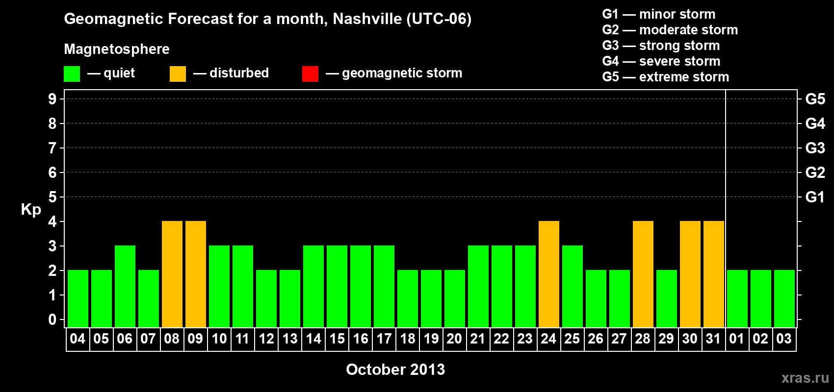 Geomagnetic storm forecast in Nashville for Oct 04, 2013