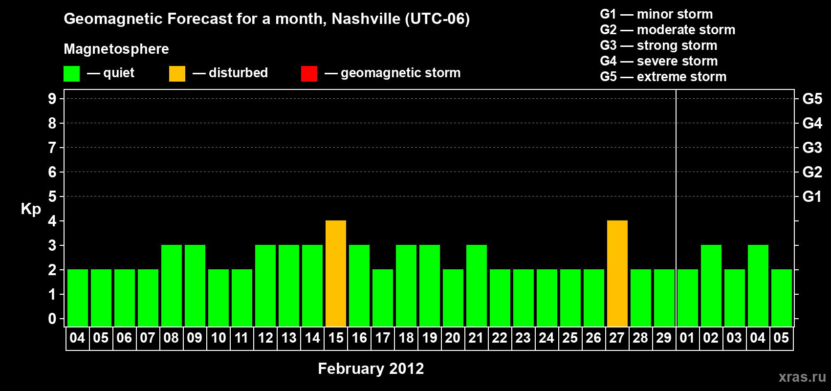 Geomagnetic storm forecast in Nashville for Feb 04, 2012