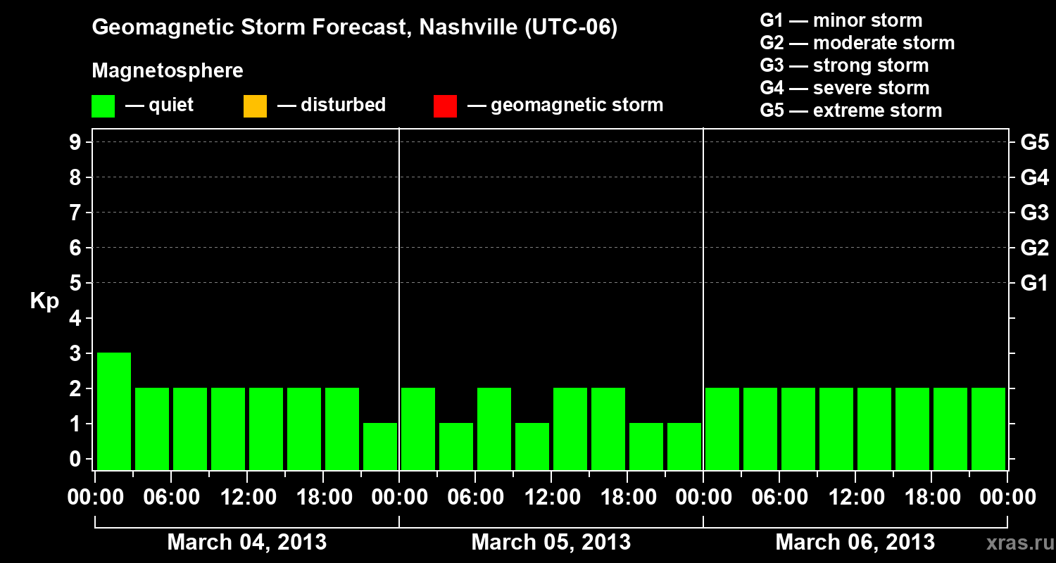 Geomagnetic storm forecast in Nashville for Mar 04, 2013