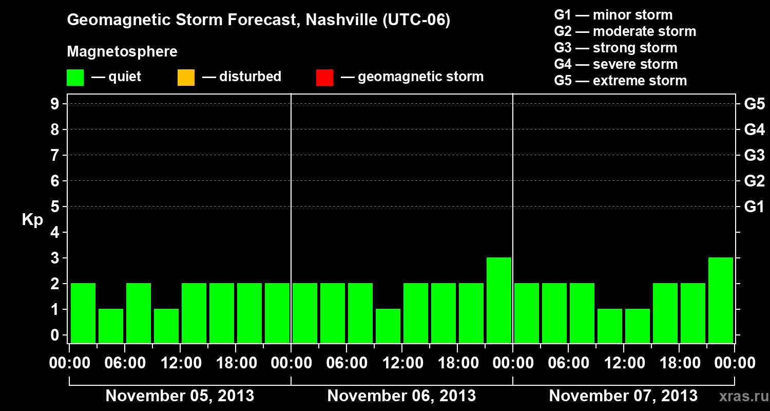 Geomagnetic storm forecast in Nashville for Nov 05, 2013