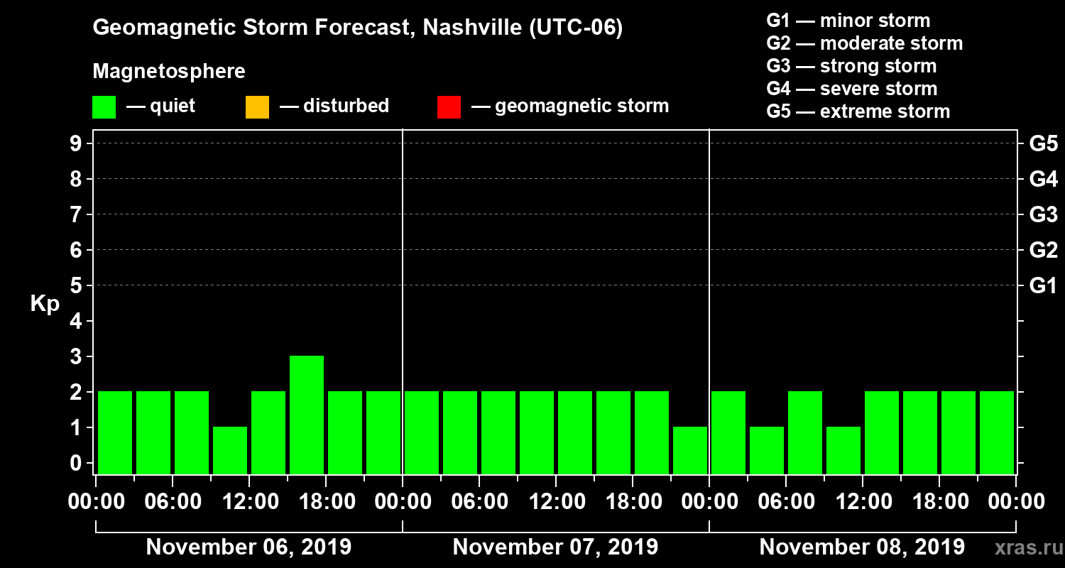 Geomagnetic storm forecast in Nashville for Nov 06, 2019