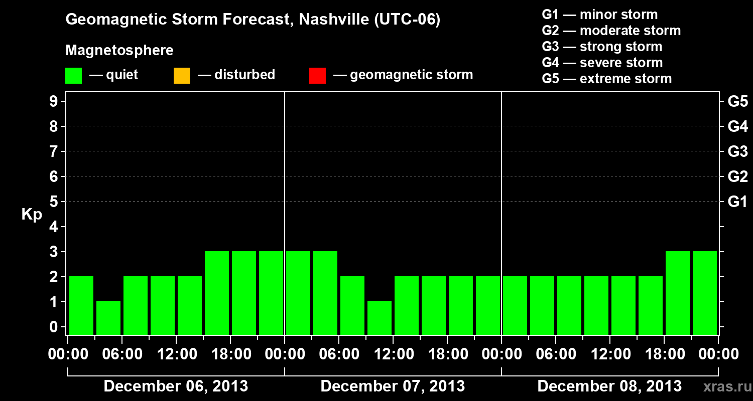 Geomagnetic storm forecast in Nashville for Dec 06, 2013