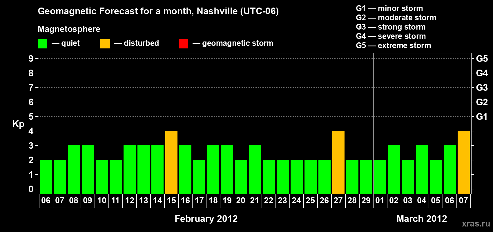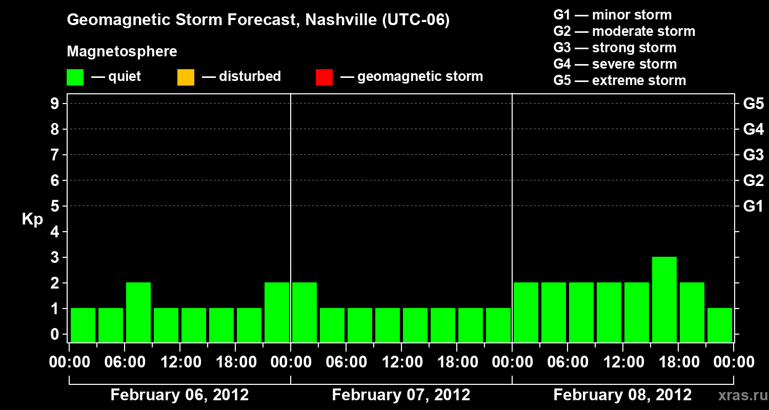 Geomagnetic storm forecast in Nashville for Feb 06, 2012