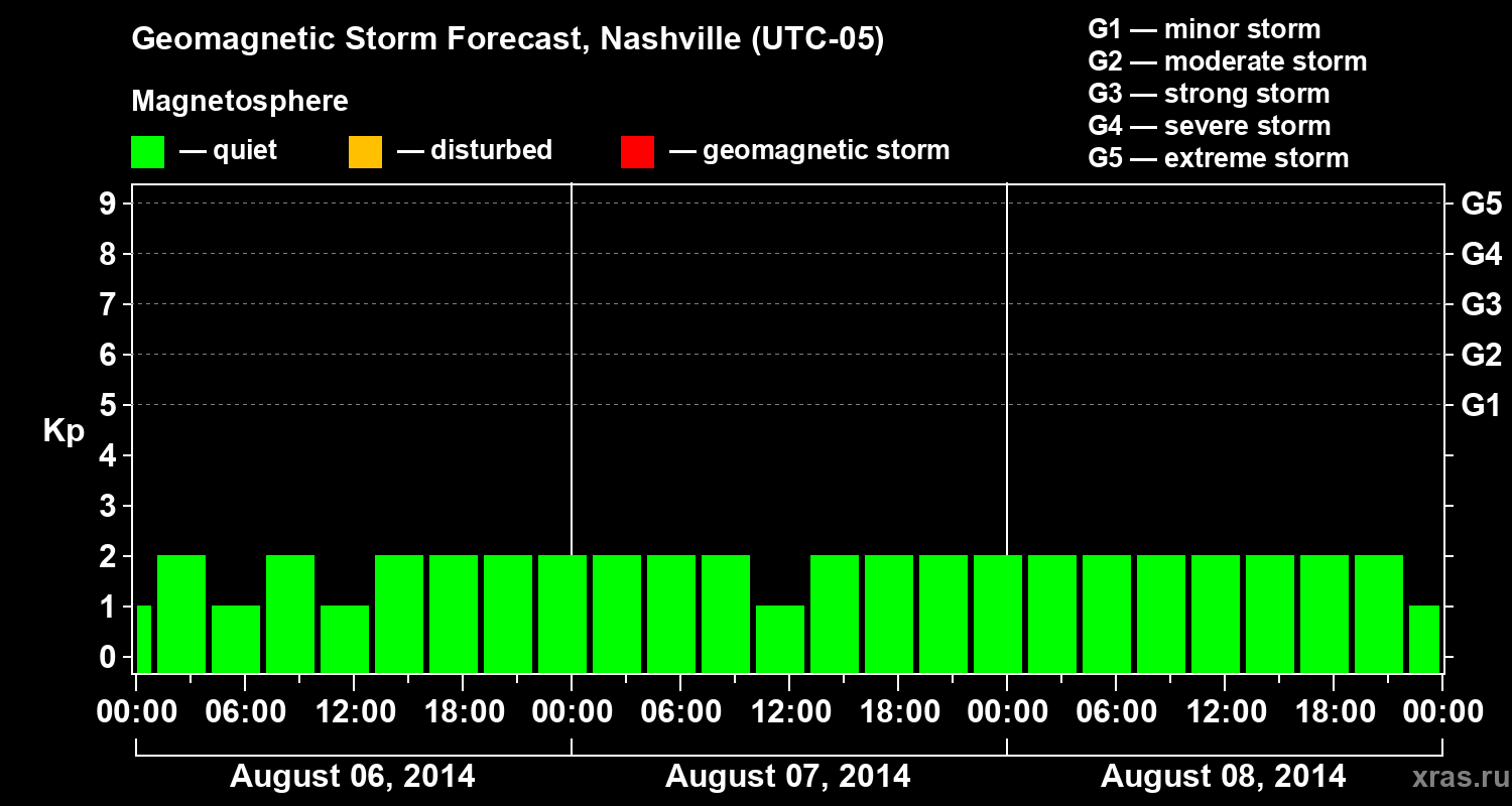Geomagnetic storm forecast in Nashville for Aug 06, 2014