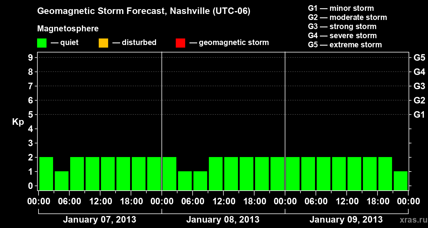 Geomagnetic storm forecast in Nashville for Jan 07, 2013