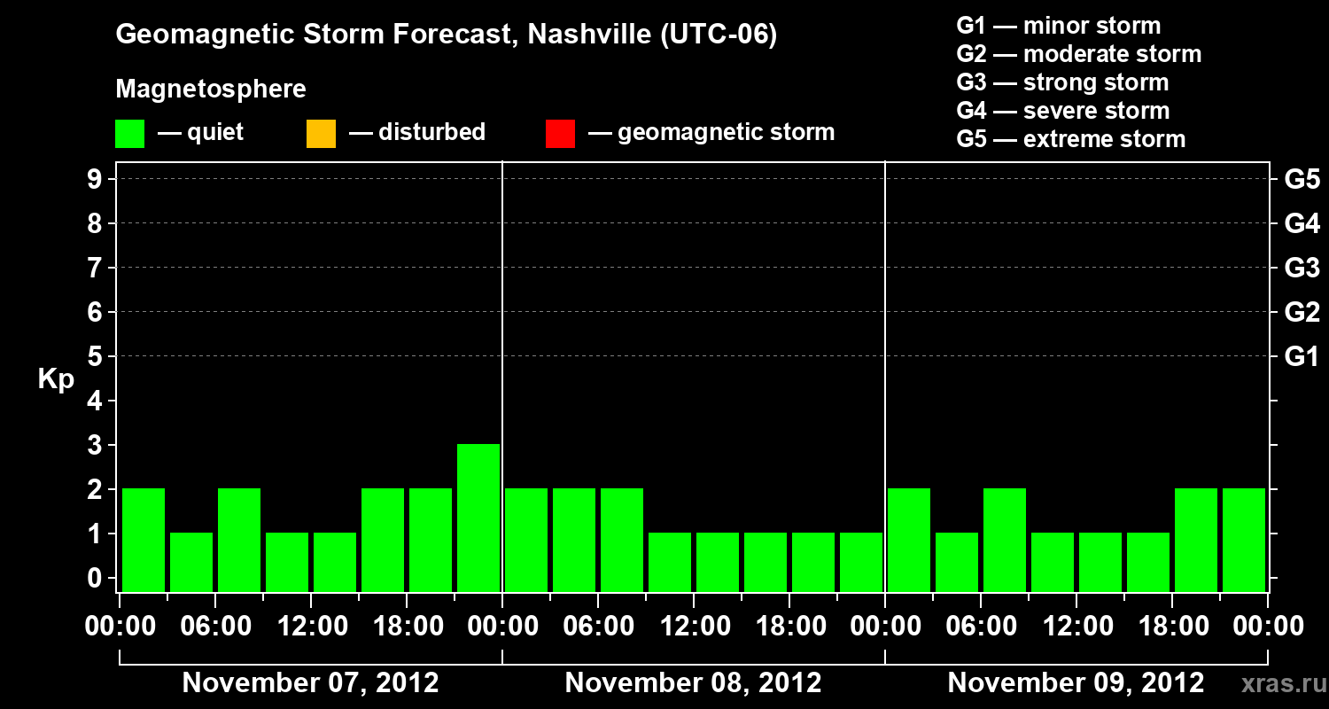 Geomagnetic storm forecast in Nashville for Nov 07, 2012