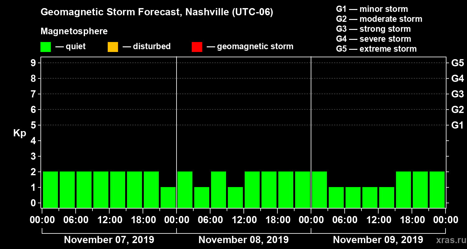 Geomagnetic storm forecast in Nashville for Nov 07, 2019