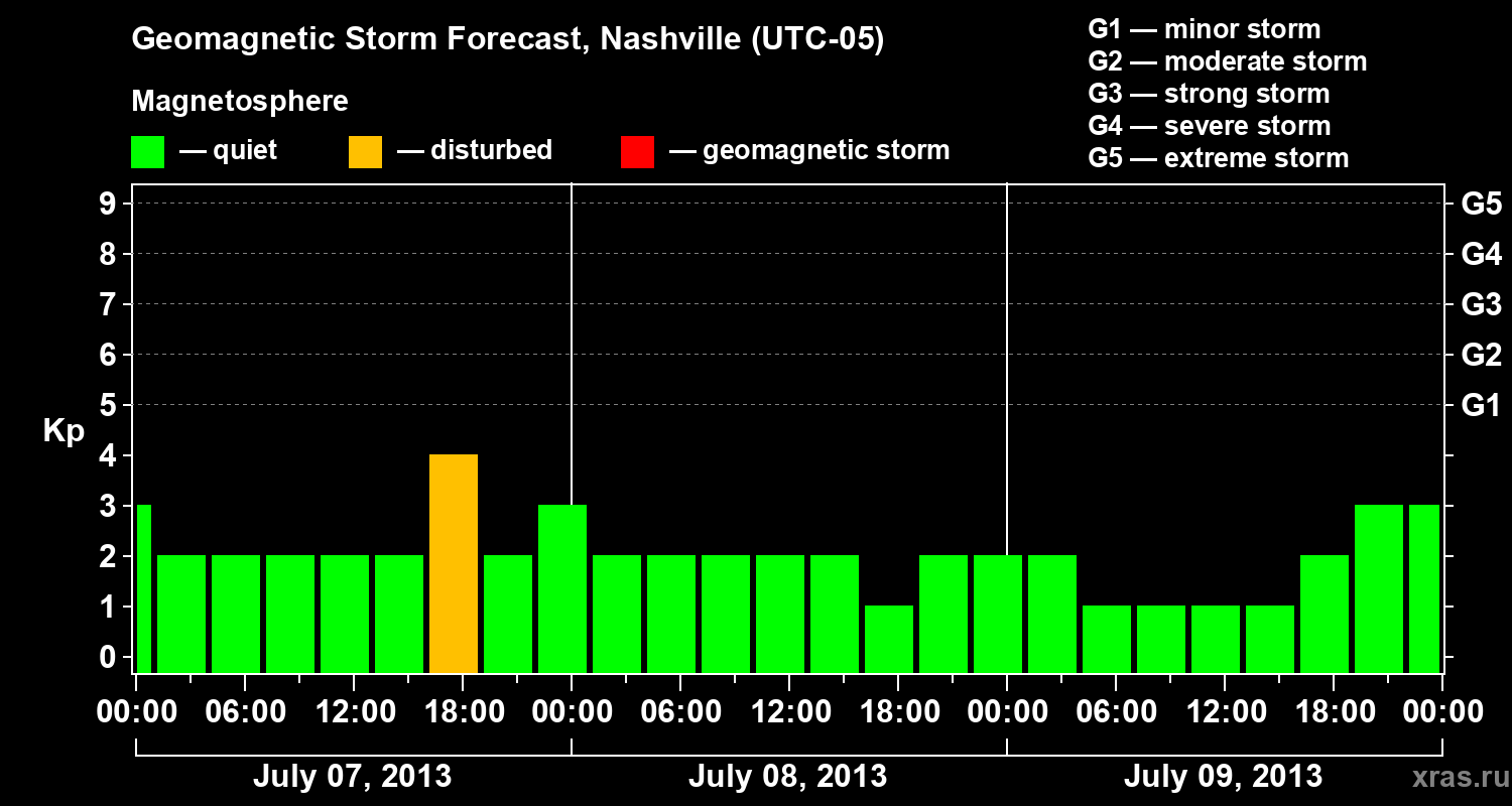 Geomagnetic storm forecast in Nashville for Jul 07, 2013